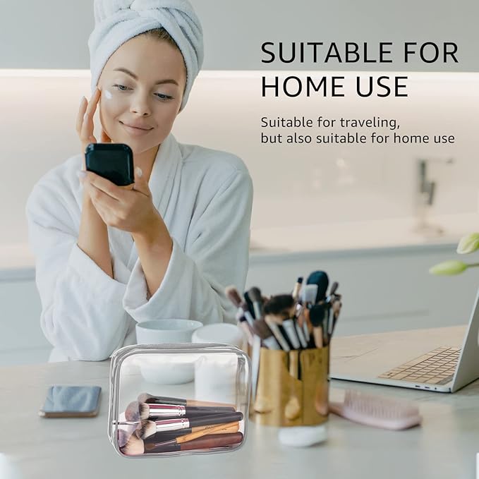 - Improved 0.6mm thickened transparent PVC material, softer and more pliable, durable and reusable; 6 PACKS 3 DIFFERENT SIZES: 1x Large clear toiletry bag (11.8" x 3.9" x 8.7"), 2x Medium clear makeup bag (9.5" x 1.9" x 7.9"), 3x Small clear cosmetic bag (7" x 1.6" x 5.5")