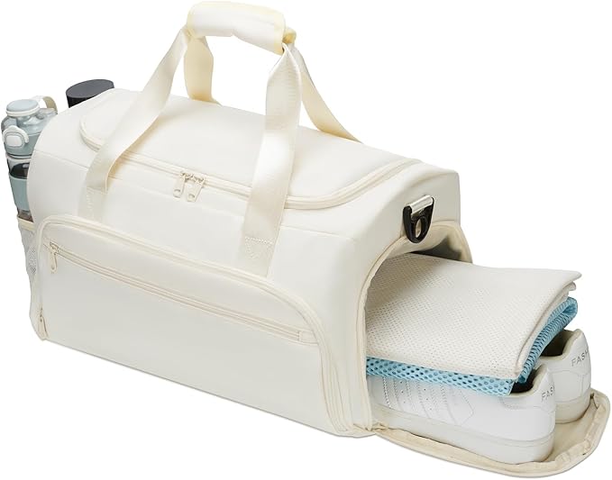 • MULTI POCKETS: This womens gym bag divided into 3 sections, The main compartment with 2 large zip pockets; 2 zip front pockets and 2 water bottle pockets; 1 dedicated shoe compartment and 1 wet pocket; Suitable for carrying your sports items, dirty laundry, shoes, & even toiletries!