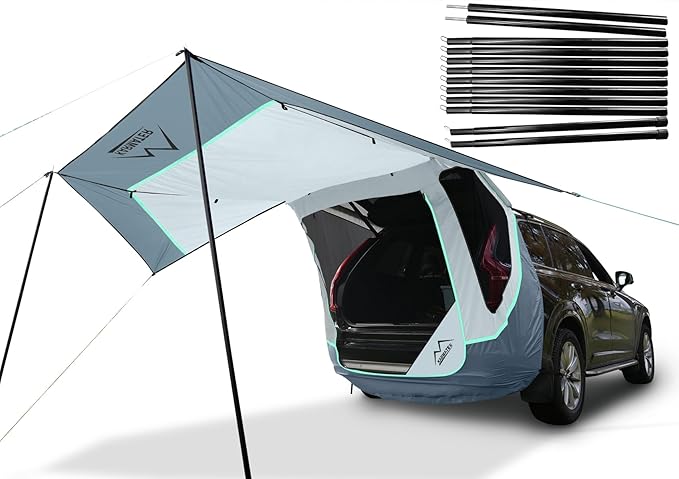 - 【Service】Our SUV tents providing the experience of camping outdoors with the added protection and comfort of sleeping off the ground.they are extremely versatile and are undoubtedly a great choice for fishing trips, traveling, or festivals where a dedicated campground is unavailable.If you are unhappy with any aspect of our car tent or if any parts are missing or damaged, contact us and we'll make it right.
