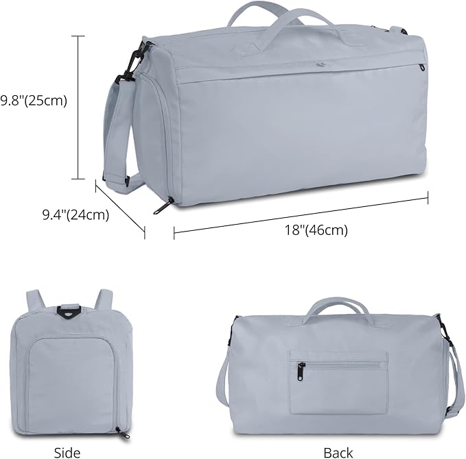 - Compact and Ultra Lightweight - The sport gym bag measures 18 L x 9.4 W x 9.5 H inch, weight 1 lb/ 0.49 kg. The travel sports bag is made of soft nylon fabric, lightweight, washable, wrinkle-free, making your carrying comfortably.