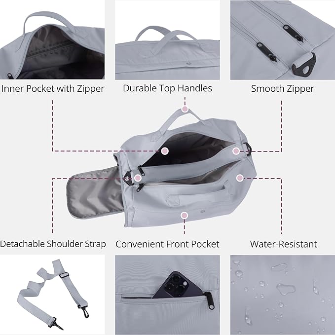 - Multi-purpose Duffel Bag - With handles and adjustable, detachable shoulder strap, you can use it indoor and outdoor as handbag, shoulder bag or cross body bag. It can be a gym bag, a dry wet separated swimming bag, beach bag, dance bag, shower bag, hospital bag, overnight bag and weekender bag. Perfect for traveling, weekend trip, gym, yoga, work, shopping, beach or daily use.