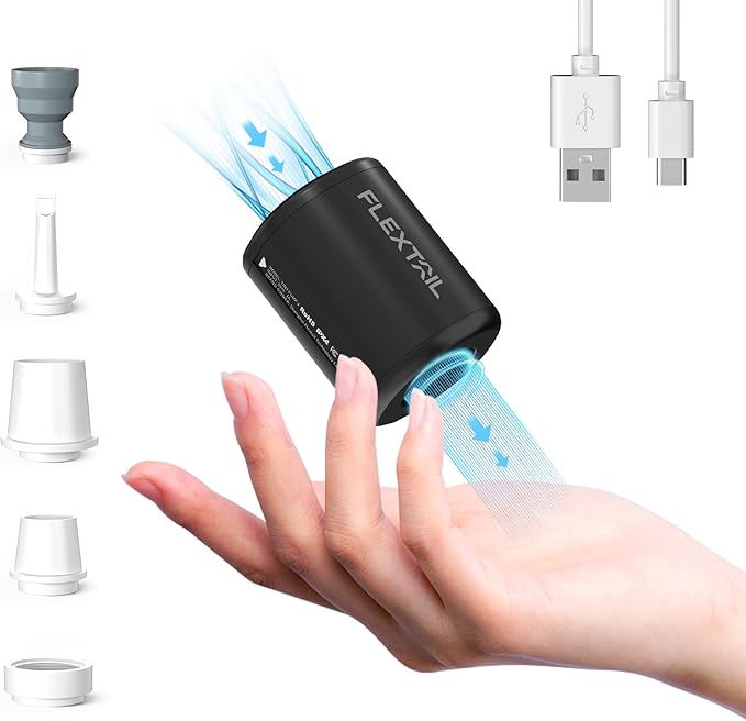 FLEXTAILGEAR Portable Air Pump - Tiny Pump 2, Electric Air Pump for Inflatables 2.8oz Battery Inflator Rechargeable Air Mattress Pump for Sleeping Pads, Pool Floats, Swimming Rings Black