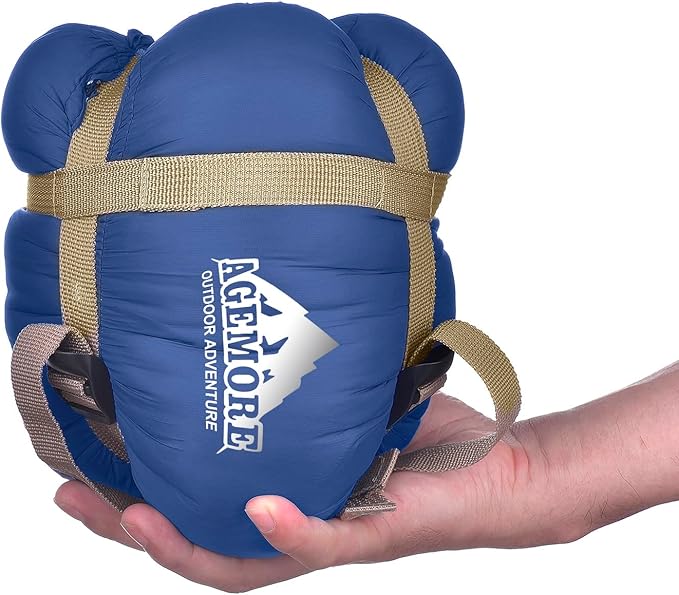 - SUPER SOFT AND COMFORT: The AGEMORE ultralight sleeping bag is made by waterproof and durable 400T polyester shell, soft breathable Polyester pongee liner, and premium imitation silk cotton filling to block the heat and give you a comfortable outdoor sleeping night. Great for camping, backpacking, hiking or traveling in summer and warm weather in spring or fall over 59 degree.