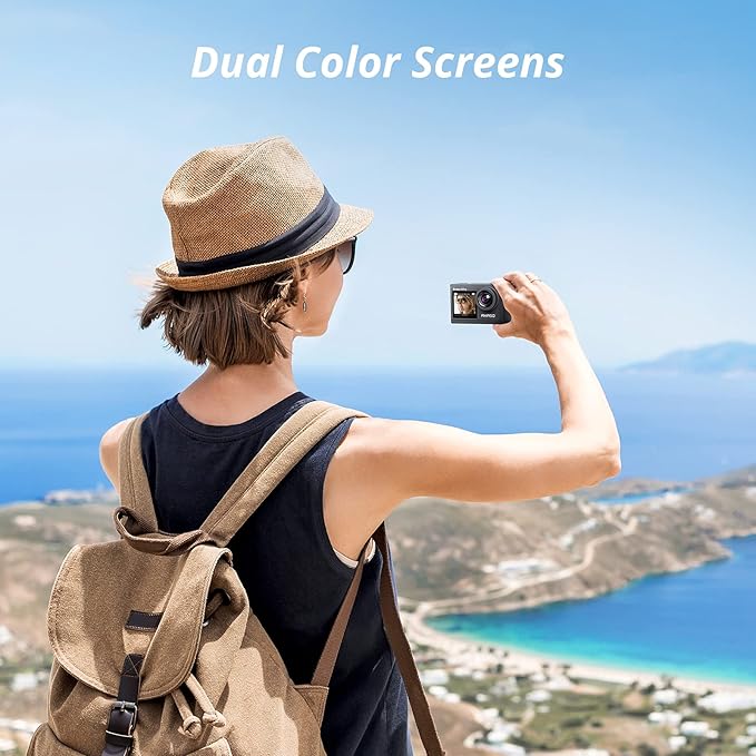 - CONVENIENT DUAL-DISPLAY - AKASO Brave 4 Pro with innovative dual-color screen design, you can change framing and monitoring views between back and front, especially the vivid front screen can satisfy your selfie need, and the 2-inch back touch screen makes it easy to use than ever.