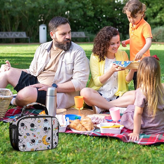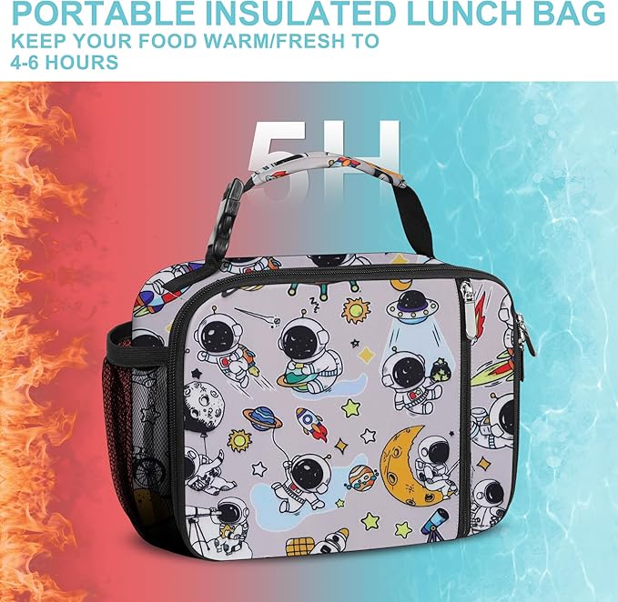 esouler Lunch Box Kids Insulated Lunch Bag for Boys & Girls Durable Children Lunchbox for School with Water Bottle Holder-Astronaut