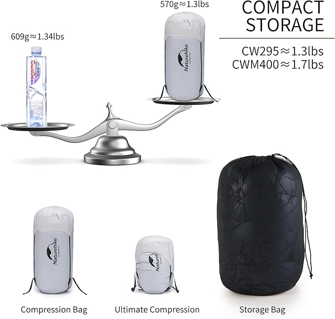 - PROFESSIONAL ENTRY SLEEPING BAG - The CW295/ CWM400 series continues to be recognized by customers as Naturehike's hottest professional entry level down sleeping bags. Whether you are a beginner or a professional outdoor enthusiast, this Naturehike Sleeping Bag will be the right outdoor companion for you. If you have any questions please feel free to contact us, we will be happy to help you solve the problem