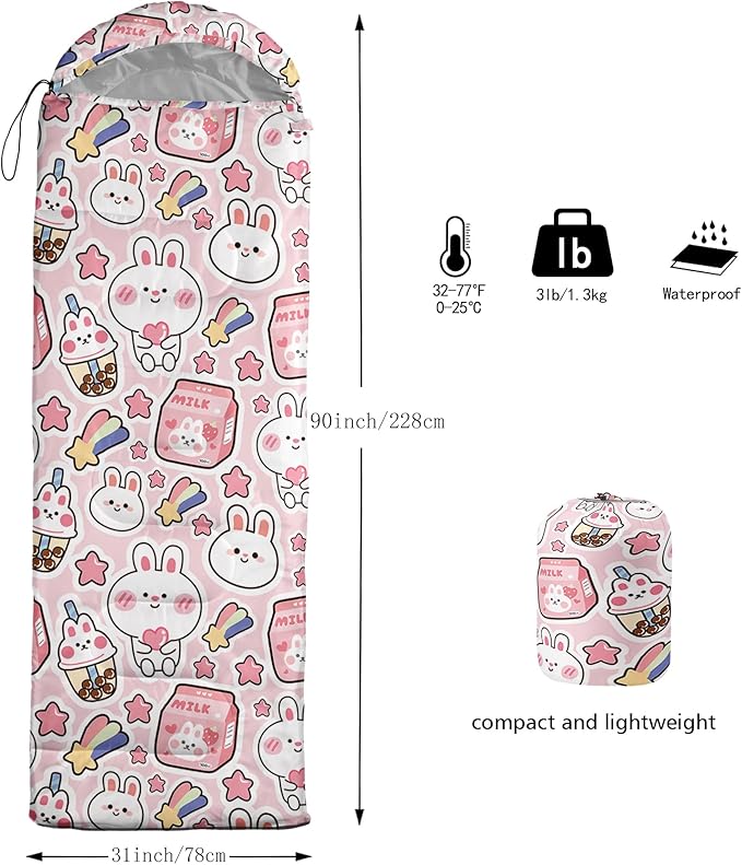 - 【Fits For 3 Seasons】: Size - 31 by 90 inches (W x D). Our sleeping bag can be used in 3 seasons with a design temperature of 32℉-77℉(0℃-28℃). These bags also have a weather resistant waterproof design to keep you warm and prevent you from any dampness.