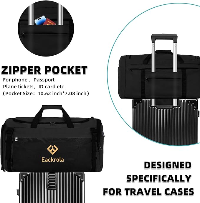 Eackrola Extra Large Sports Gym Bag, Travel Duffel bag with Wet Pocket & Shoes Compartment for men women, 85L, Lightweight (Black)