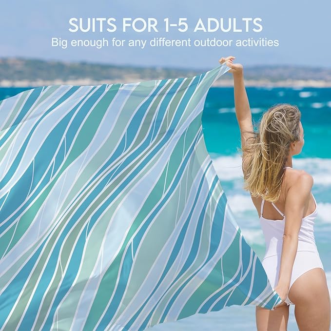 - 🏕️Beach Blanket Oversized:Good tear resistance,dry quickly.Also can be used as a rain shed,sunshade,tent,toddler crawl,emergency mat.Feel comfortable to lying down.Won't irritate your skin,better professional fabric sewing.