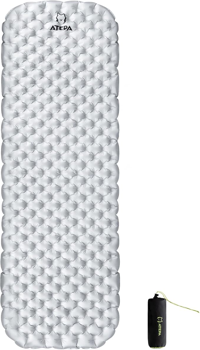 - ULTRALIGHT & INFLATABLE & PACKABLE – IDEAL FOR LIGHTWEIGHT ADVENTURES: Weighing only 1.7 lbs and packing down to a small 11x5.1" roll, this inflatable mattress is designed for minimalists who need comfort without the bulk. Quick inflation and deflation make it an easy addition to your gear.