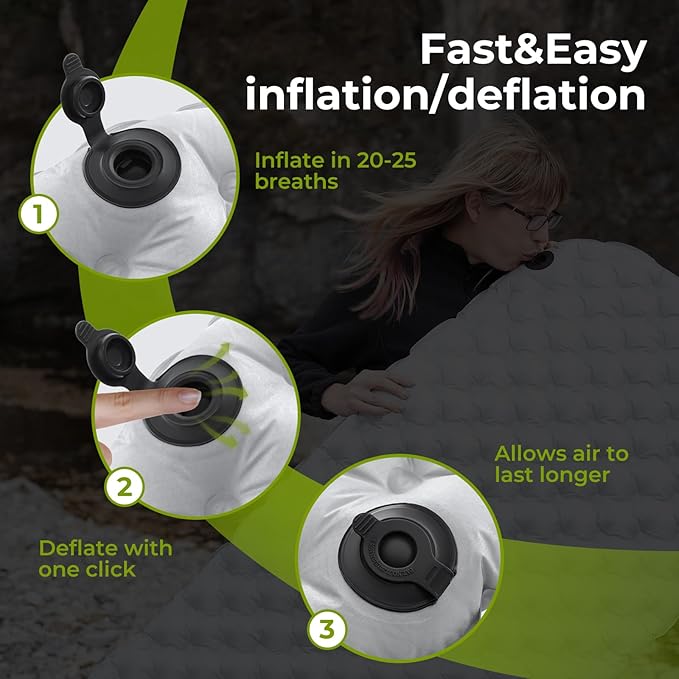 - DURABLE MATERIALS & USER-FRIENDLY VALVE – QUICK INFLATE & DEFLATE: Made from durable, tear-resistant nylon and equipped with a TPU safety valve, this pad inflates and deflates easily with no air leaks, ensuring a hassle-free setup and breakdown.
