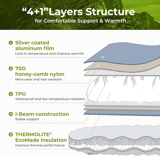 - PERFECT FOR ALL OUTDOOR SETTINGS – VERSATILE & WEATHER-READY: Waterproof, abrasion-resistant, and ideal for all outdoor environments—whether you're camping, hiking, or car camping, this sleeping pad keeps you dry, warm, and well-rested through any adventure.