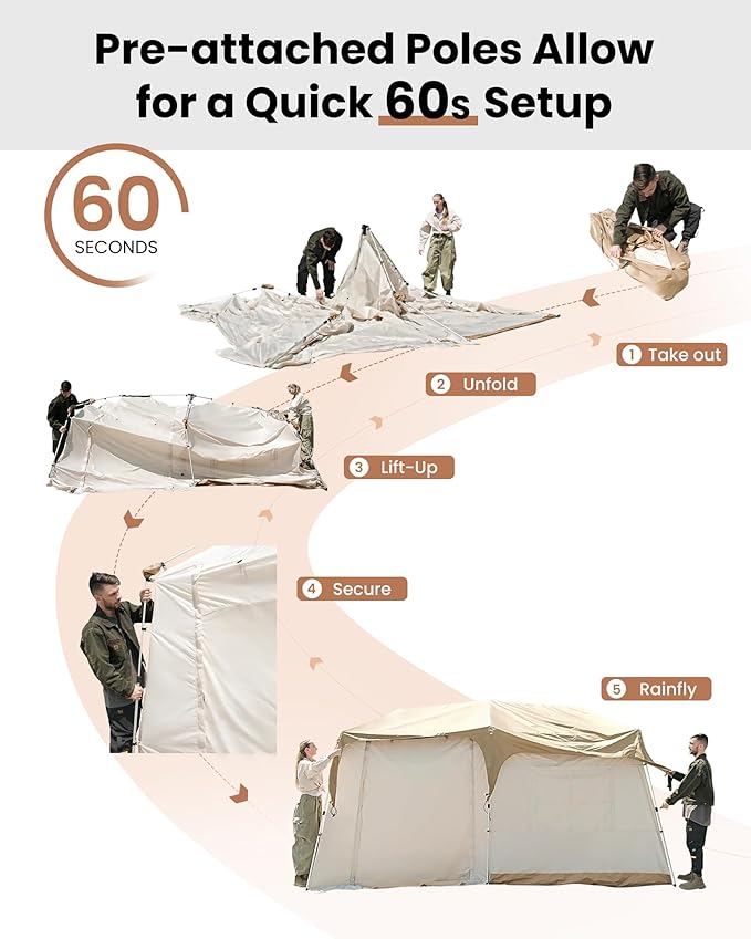 - EFFORTLESS SETUP: No tools required—set up your tent in minutes with our advanced pop-up design and tool-free aluminum alloy frame system. Simply unfold and the tent is ready to go. Spend less time assembling and more time enjoying your outdoor adventure.