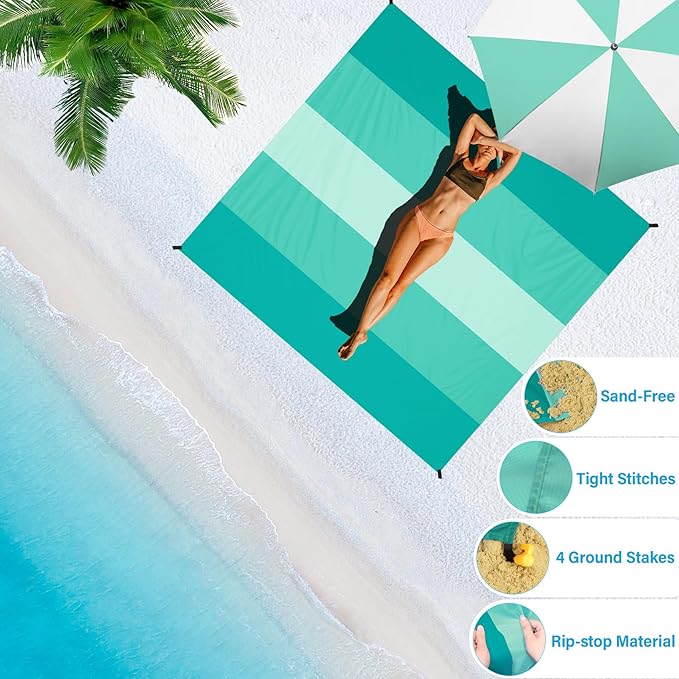 - 🏕️Beach Blanket Oversized:Good tear resistance,dry quickly. Can also be used as a rain shed,sunshade,tent,toddler crawl,emergency mat. Feel comfortable to lying down. Won't irritate your skin,better professional fabric sewing.