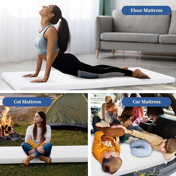 - 【COMFORTABLE & STRONG SUPPORT】The mattress is made of high elastic memory foam, which can effectively relieve muscle pain and provide a comfortable sleeping space. High density support foam is suitable for a variety of hard surfaces. The soft cloth cover prevents heat loss from your body, allowing you to get plenty of rest and release stress.