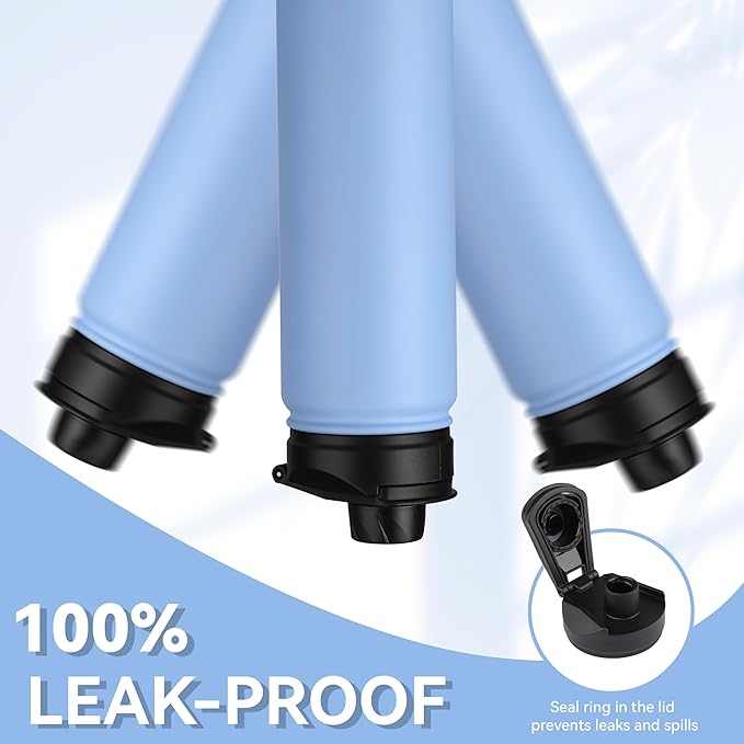 - 【Spout Lid & Straw Lid】 This water bottle comes with 2 lids: an innovative leak-proof spout lid and a newly improved straw lid that has been enhanced for better flow. Easily fill your water bottle with ice and clean it through the wide mouth opening. Both allow easy one-handed or hands free sipping, they are designed for you to drink anytime, anywhere.