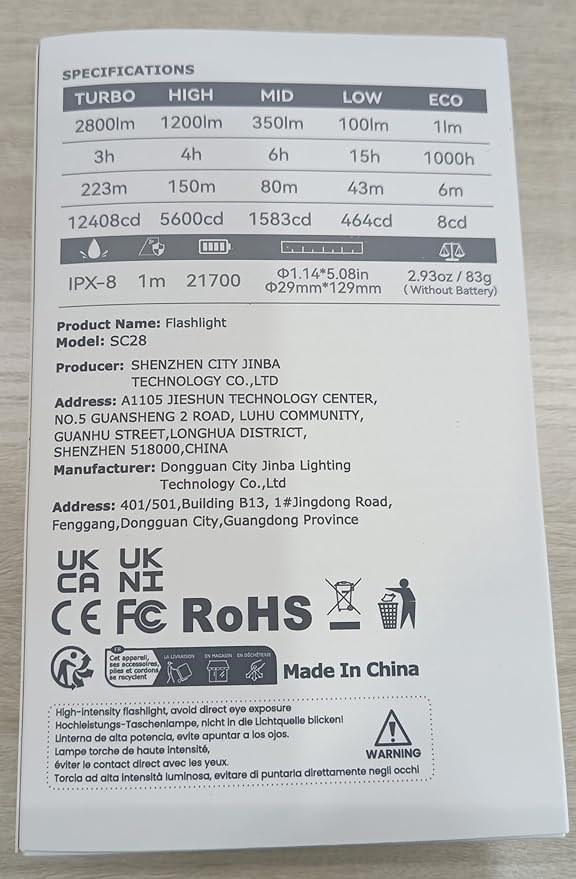- Special Feature : Tactical, 2800 Lumens, Edc, Ultra Powerful, Rechargeable