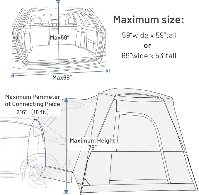 - SEAMLESS CONNECTION: Our SUV tent securely connects to your trunk, offering extra sleeping and storage space without any gaps; stay dry even during rainy weather when accessing items from your car, a E-port allow you connection to power outlets to keep your devices charged.