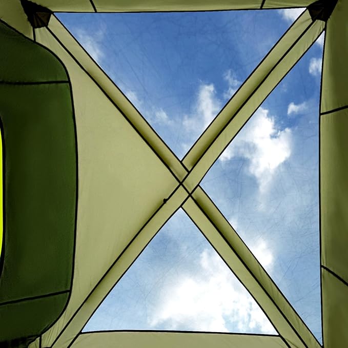 - WEATHER RESISTANT: Made with PU2000 waterproof coating and wearproof polyester taffeta cloth, this tent offers reliable protection from the elements; features 1 large door, a top mesh skylight, and 2 mesh windows for optimal ventilation and stargazing