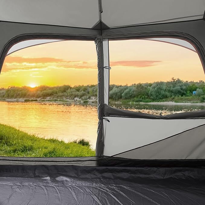 • 🌊WATERPROOF FABRIC: Tents for Camping 6 Person inside and outside the tent is the use of 15*19 density PU2000 150D Oxford fabric, it is not only wear-resistant anti-tear, smooth feel not easy to wrinkle, and combined with 2000mm PU waterproof coating, even in outdoor camping without fear of rain.
