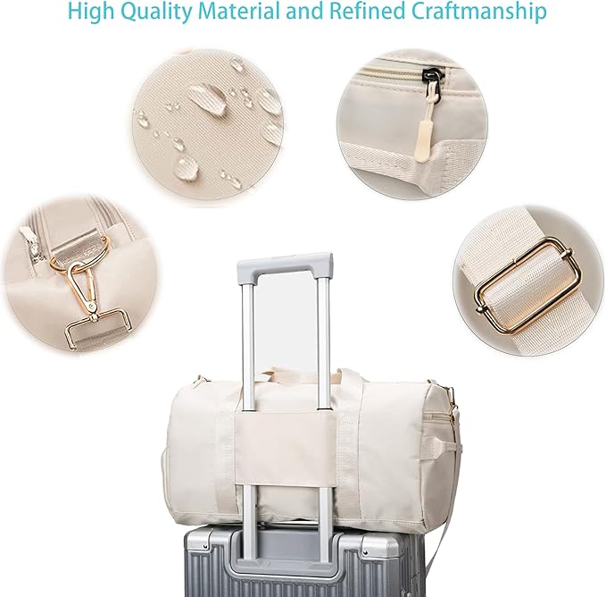 Women Gym Bag with Separation for Wet and Dry, Shoe Storage, Waterproof Travel Duffle Bag for Gym, Swimming, Yoga, Sports (Beige)