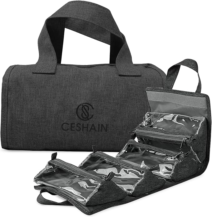 - Space Saver Design- This foldable hanging toiletry bag can store all your travel toiletry essentials giving you more space for your other stuff. Each clear pouch has a large capacity to accommodate necessities. It's a key family travel essential, assuring an organized and minimalistic packing experience.
