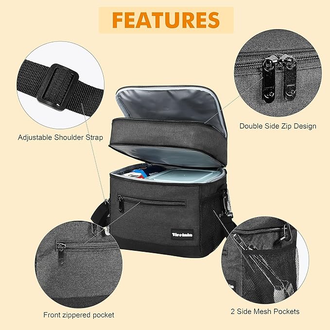 - Portable Design - It comes with adjustable and detachable shoulder straps and a comfortable handle, allowing you to conveniently take this lunch bag to camping or the gym. The dual zipper design makes it easy to access your food.