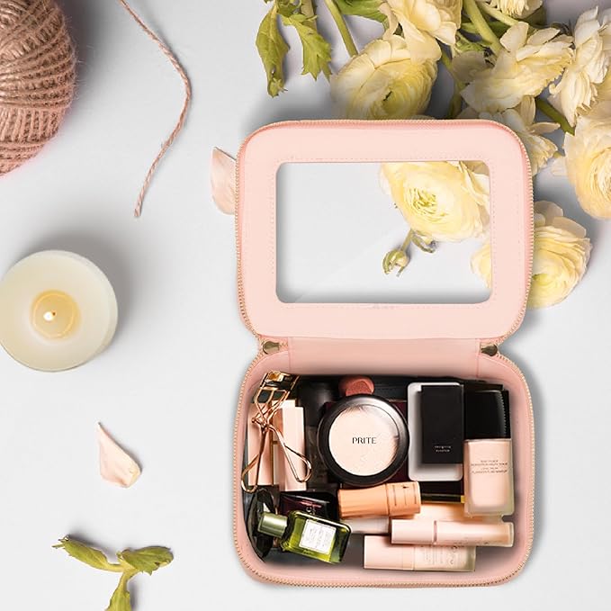 - 【ROOMY & STYLISH】 Measuring 8.3'' x 6.2'' x 2.1'', this makeup travel organizer embodies luxury and style. Its minimalist boxy design in a chic color exudes elegance; Crafted from exquisite Vegan leather and adorned with polished hardware