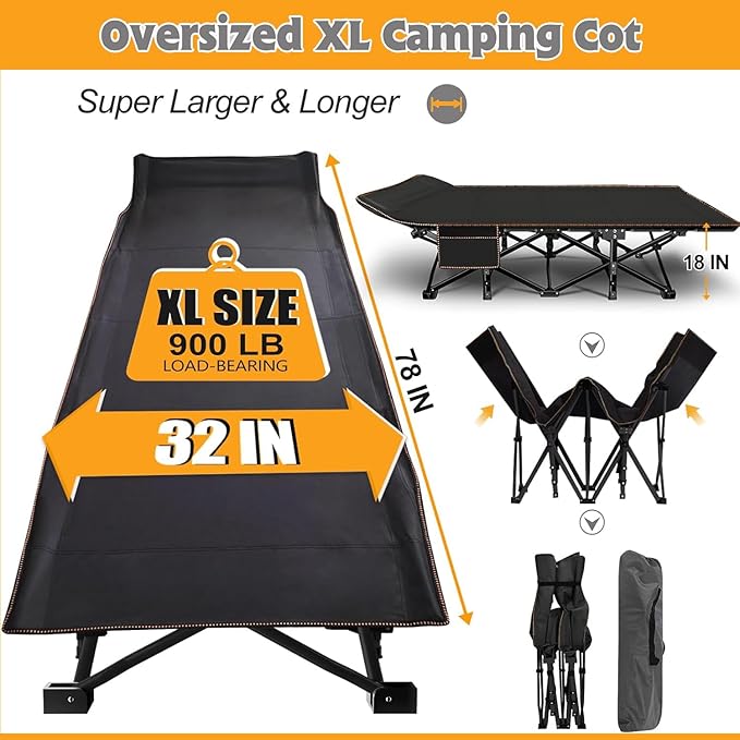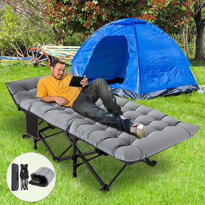 ABORON Oversized Folding Camping Cot for Adults, Double Layer 1200D, 500lb Capacity, Heavy Duty Guest Cot with Mat & Carrying Bag for Indoor & Outdoor Use