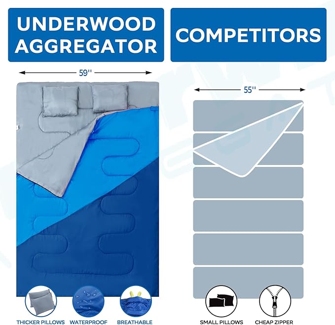 - BETTER CUSTOMER SERVICE: The Underwood Aggregator sleeping bag for men undergoes rigid inspection before its departure from the factory. Should you have any problems with the sleeping bag for 2 person, please don't hesitate to contact our customer support team. We are ready to help and happy to hear from you. Your satisfaction, our responsibility