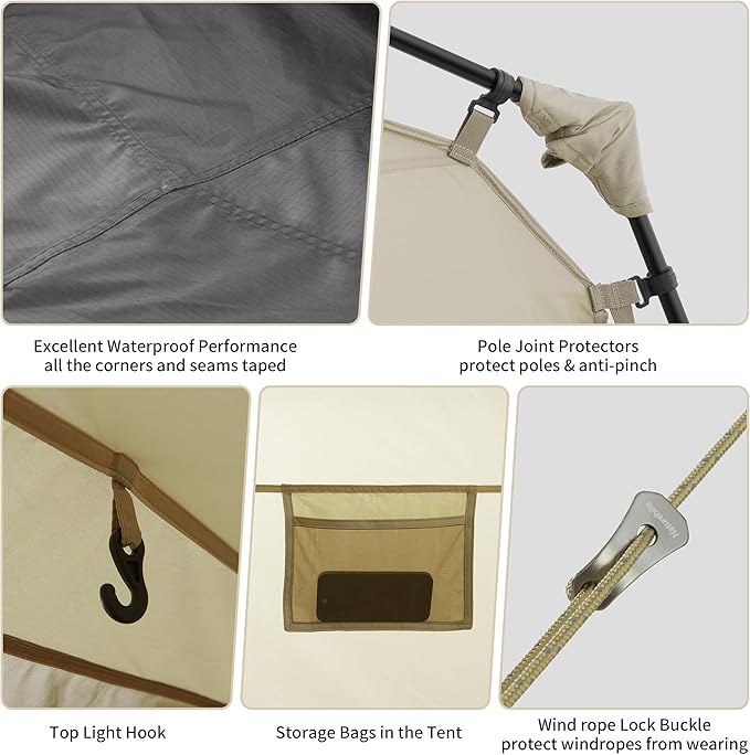- Easy Setup Instant Tent: With pre-attached poles and an automatic structure, this camping tent is super easy to assemble in 60 seconds, saves time, and is friendly for people with no camping experience.