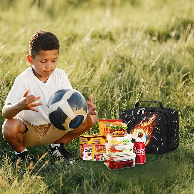 - It's super popular and very classy with soccer pattern,The lunchbox bag is leak-proof and friendly to carry on.The bag is suitable perfect for kids, children, boys to school, boys to picnic. You will love to bring this adorable insulated lunch box to school everyday!