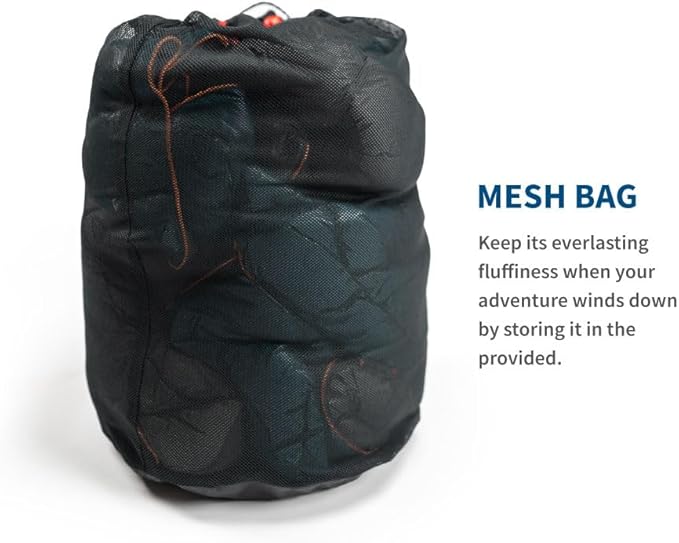 - Unwind in Cozy Comfort: Our camping blanket keeps you snug and warm, thanks to its premium 650 fill power down. Whether it's a chilly night under the celestial canopy or a summer breeze by the lakeside, it's your trusted companion. When your adventure rests, tuck it into the included mesh bag, ensuring its perpetual fluffiness.