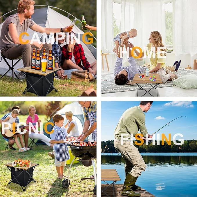 - Traveling Partner: The portable folding tables with good enough height and size for drinks and snacks. It can meet the table you need out. As a beach table, grill table, mini table, laptop table, tent table, coffee table, picnic table and card table