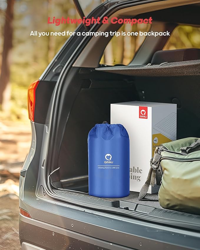 QPAU Sleeping Pad, 2 Person Camping Mattress, Enhanced Support for Healthy, with Built-in Foot Pump, 4.7 Inch Durable Sleeping Mat for Camping, Hiking, Backpacking and Home, (Blue)