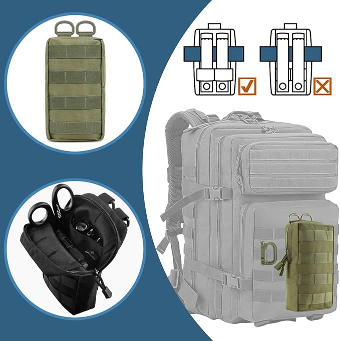 - TWO-WAY ZIPPER: MUCHER utility pouch with two-way zips in silent drawstrings allows you to quickly close the military bag from both sides or access only one side of the tactical backpack without opening it completely, very convenient and practical.