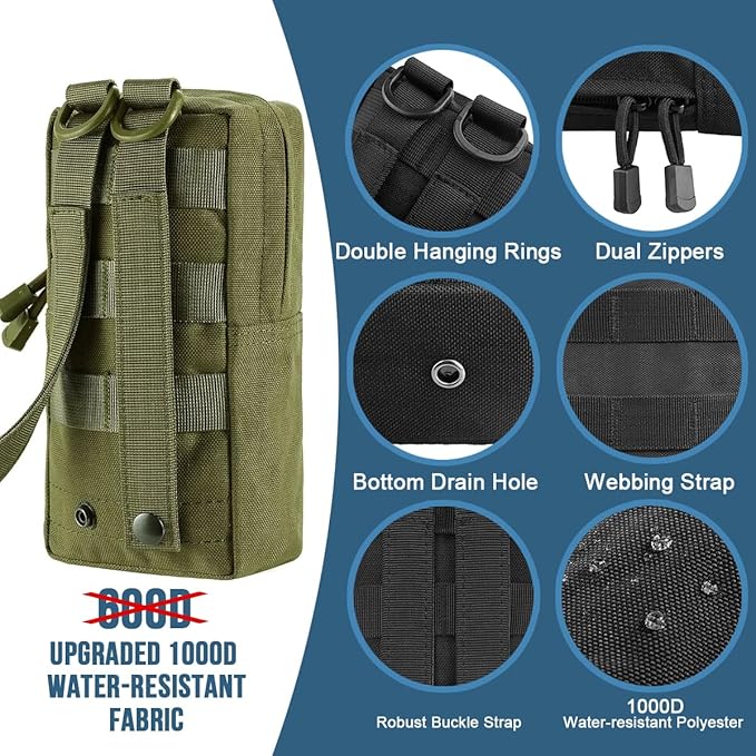 - MULTI-PURPOSE: MUCHER molle bags are suitable for indoor and outdoor use, including camping, hiking, hunting, sporting events, school supplies, tools, etc. It is suitable for storing mobile phones, keychain, GPS device, digital cameras, medical supplies, small tools, and anything else you need, easily accessible and reinforced molle attachment points.