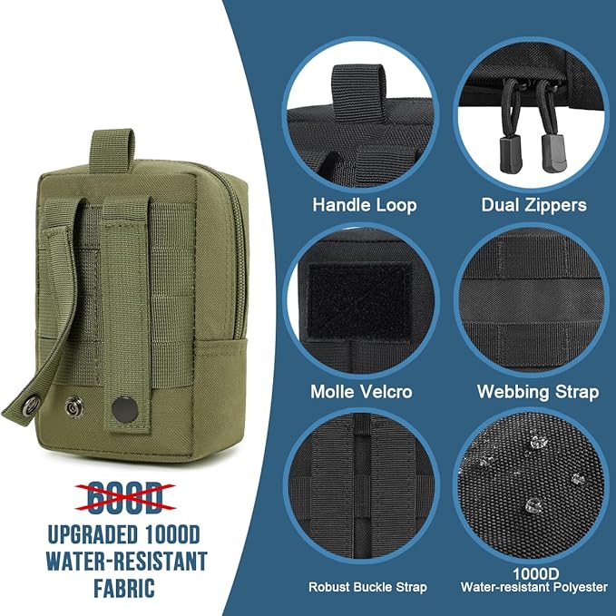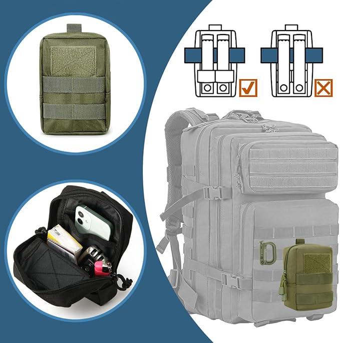 - MULTI-PURPOSE: MUCHER molle bags are suitable for indoor and outdoor use, including camping, hiking, hunting, sporting events, school supplies, tools, etc. It is suitable for storing mobile phones, keychain, GPS device, digital cameras, medical supplies, small tools, and anything else you need, easily accessible and reinforced molle attachment points.