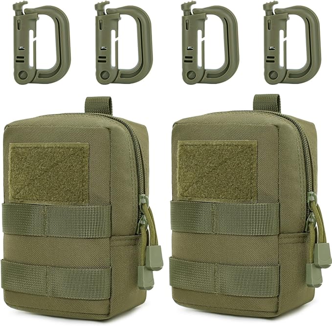 MUCHER 2 Pack Molle Pouches Tactical Pouches EDC Pouch Organizer Molle Bag Utility Pouch with 4 Carabiners for Outdoor Hiking Hunting Camping Training