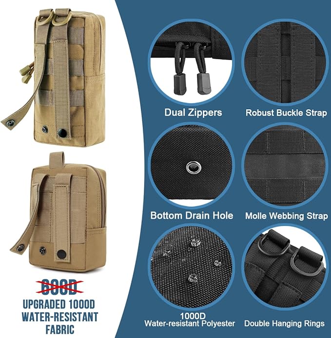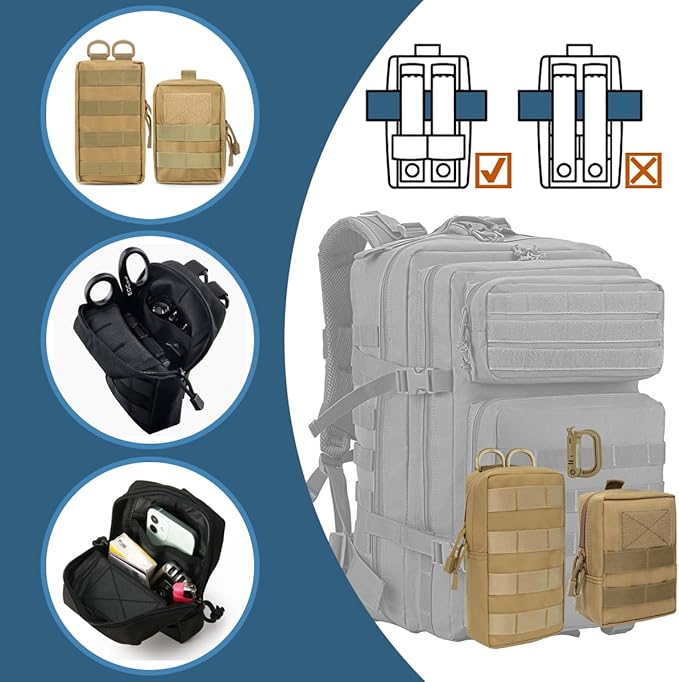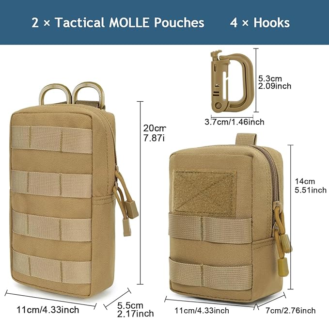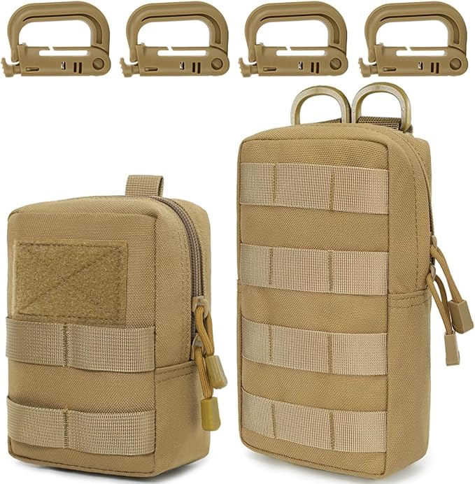MUCHER 2 Pack Molle Pouches Tactical Pouches EDC Pouch Organizer Molle Bag Utility Pouch with 4 Carabiners for Outdoor Hiking Hunting Camping Training