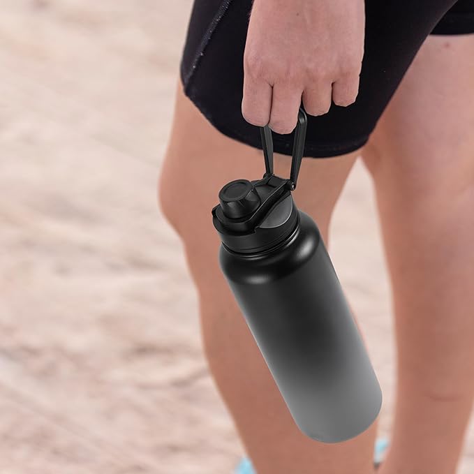 - 【STAY REFRESH THROUGHOUT THE DAY】It's easy to stay hydrated on exciting adventures with such a versatile bottle. Liquid can be fresh in its best taste for a whole day. The straw lid is ideal for cycling, hiking and gym while the spout lid is perfect for beach, camping and hunting.
