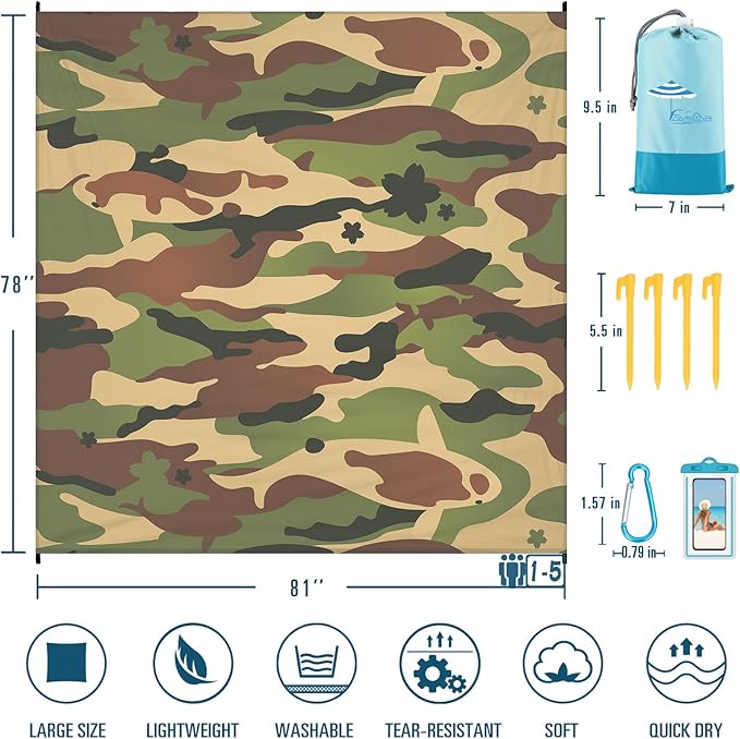 - 🌴BEACH BLANKET SANDPROOF WATERPROOF:78''×81'' fits 1-5 adults.Made with ripstop 210T polyester.The sand will fall down when you shake the blanket.The little water left behind will dry out in minutes.