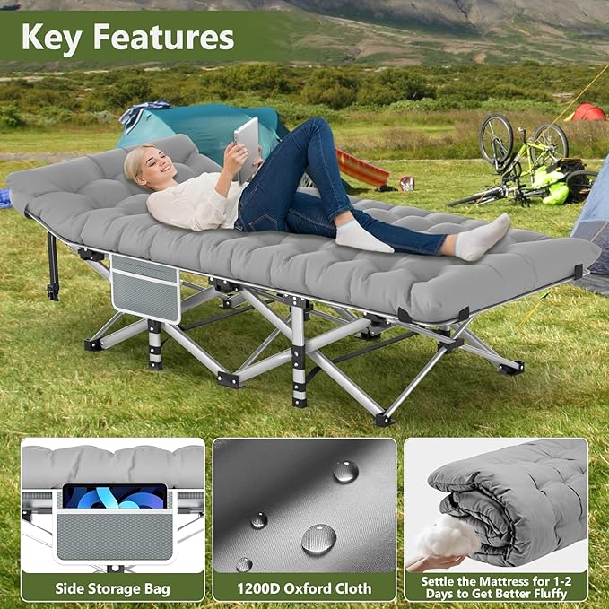 Slendor Camping Cot, Folding Camping Cots for Adults with Mattress, Portable Camping Bed, Sleeping Cot with Pillow & Carry Bag for Office Home Nap, Outdoor, Camping, Travel, Max Load 500lbs