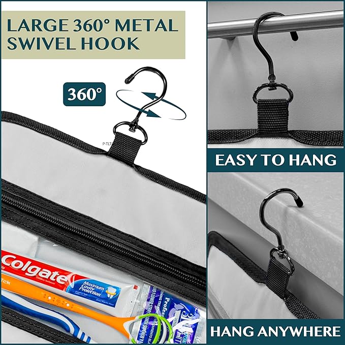 - HANGING COSMETICS TRAVEL BAG ORGANIZER: This toiletry bag for women has a hanging hook and multiple pockets that help you stay organizer during business trip, vacation travel. The hanging hook makes it easy to hang the toiletry bag to bars in the hotel shower bathroom. Unzip your toiletry bag to reveal compartments to organize your shampoo, skincare face hygiene products. This toiletry travel bag is an essential accessory for cruise in Europe, plane, Hawaii Trip, and honeymoon.