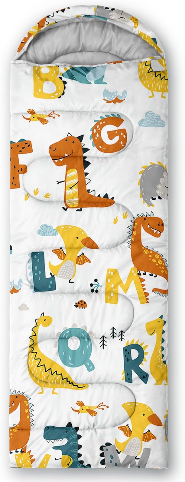 - 【Fits For 3 Seasons】: Size - 31 by 90 inches (W x D). Our Dinosaur sleeping bag can be used in 3 seasons with a design temperature of 32℉-77℉(0℃-25℃). These Graffiti style bags also have a weather resistant waterproof design to keep you warm and prevent you from any dampness.