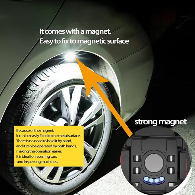 - 💡【Magnetic COB Work Light】- The cob work light has a strong magnetic attraction on the back, which can be easily attached to any metal surface. 180-degree adjustable stand allows you to place the cob light at different angles according to actual needs. The carabiner design allows you to hang the cob light. Help you free your hands and make your work more convenient.
