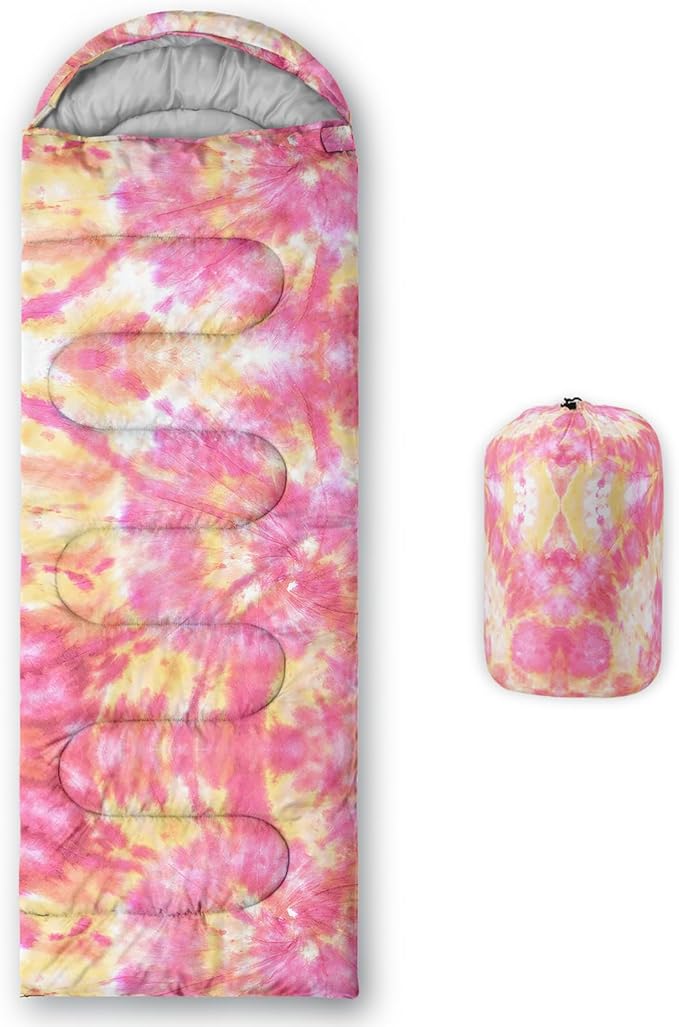 - 【Fits For 3 Seasons】: Size - 31 by 90 inches (W x D). Our Pink Psychedelic Tie Dyed sleeping bag can be used in 3 seasons with a design temperature of 32℉-77℉(0℃-25℃). These Pink Spiral Swirl bags also have a weather resistant waterproof design to keep you warm and prevent you from any dampness.