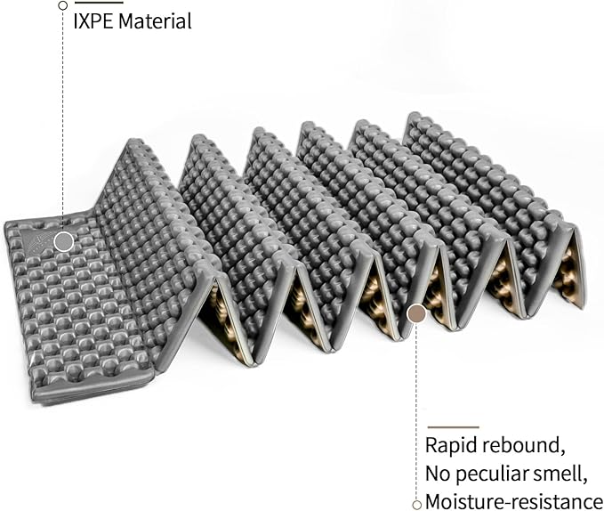 - 【Great Material】This portable sleeping pad is made of a lightweight IXPE foam that is comfortable to lay on. The closed cell foam sleeping pad ergonomically support all of your pressure points, giving you superior support and comfort all night long, no matter how you sleep.