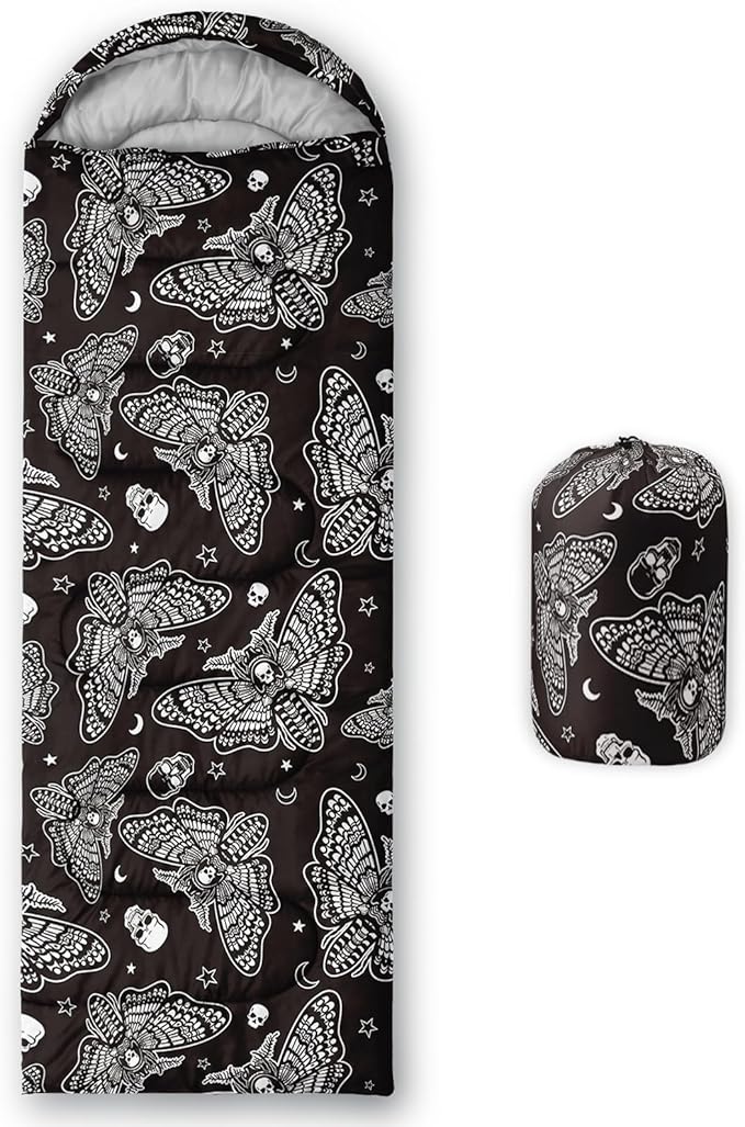 - 【Fits For 3 Seasons】: Size - 31 by 90 inches (W x D). Our Death Moth sleeping bag can be used in 3 seasons with a design temperature of 32℉-77℉(0℃-25℃). These Sleeping bags also have a weather resistant waterproof design to keep you warm and prevent you from any dampness.