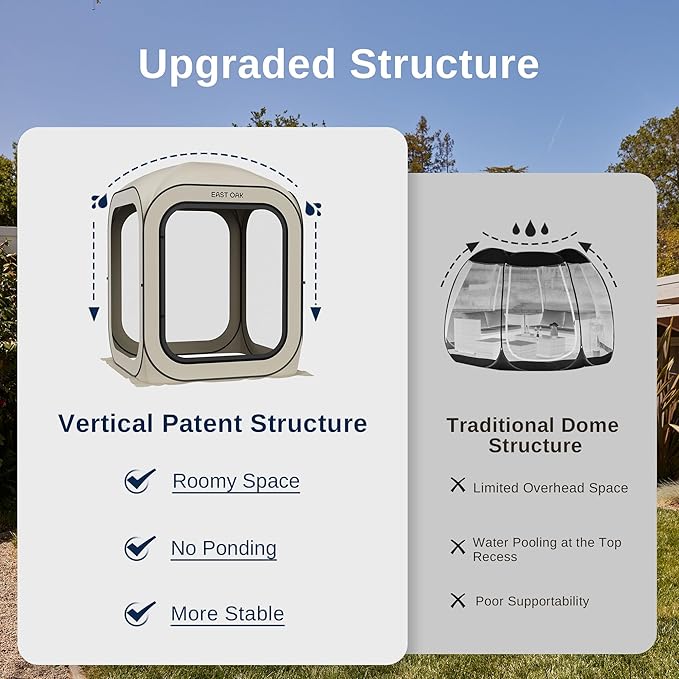 - ๐๐ป๐ท๐ผ๐ ๐ฌ๐ผ๐๐ฟ ๐ข๐๐๐ฑ๐ผ๐ผ๐ฟ ๐๐ถ๐ณ๐ฒ: Creating a more comfortable and mosquito-free outdoor space is easy with our EAST OAK screen house. It has a hook on the top to hang a lamp, and a light strip can be wrapped around the edge to increase the brightness for use on the darkest nights. Day to night, this is an absolute must-have for the patio, camping, picnics, parties, backyard, deck, and even kids' parties! NOTE: Pendant lights need to be purchased separately